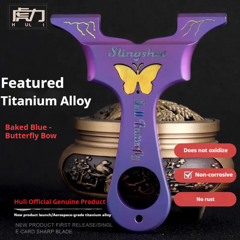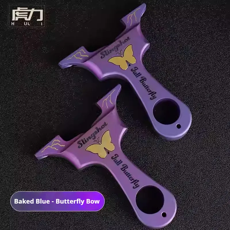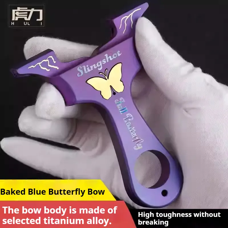 Home > Products > Huli slingshot > Genuine all-titanium alloy blued butterfly dragon tooth slingshot outdoor high-power high-precision flat rubber band slingshot holder