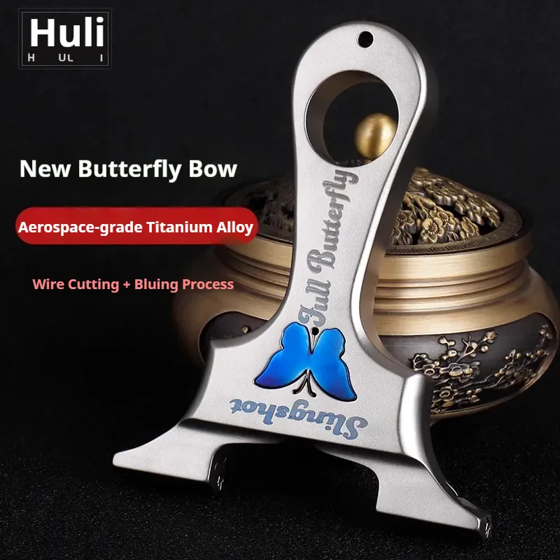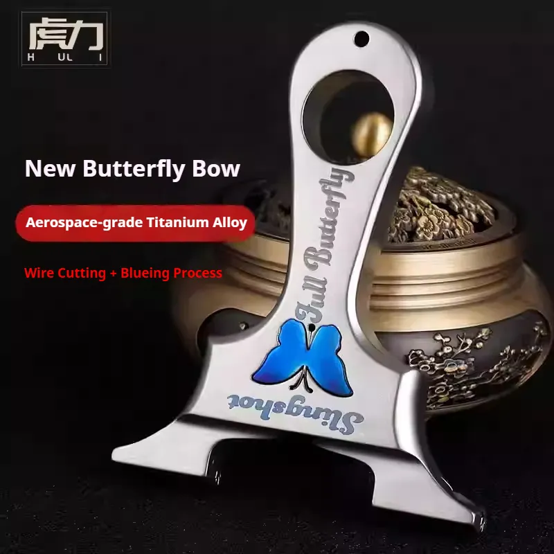 Home > Products > Huli slingshot > Genuine all-titanium alloy butterfly dragon tooth fast-press high-precision outdoor high-power flat rubber band slingshot frame