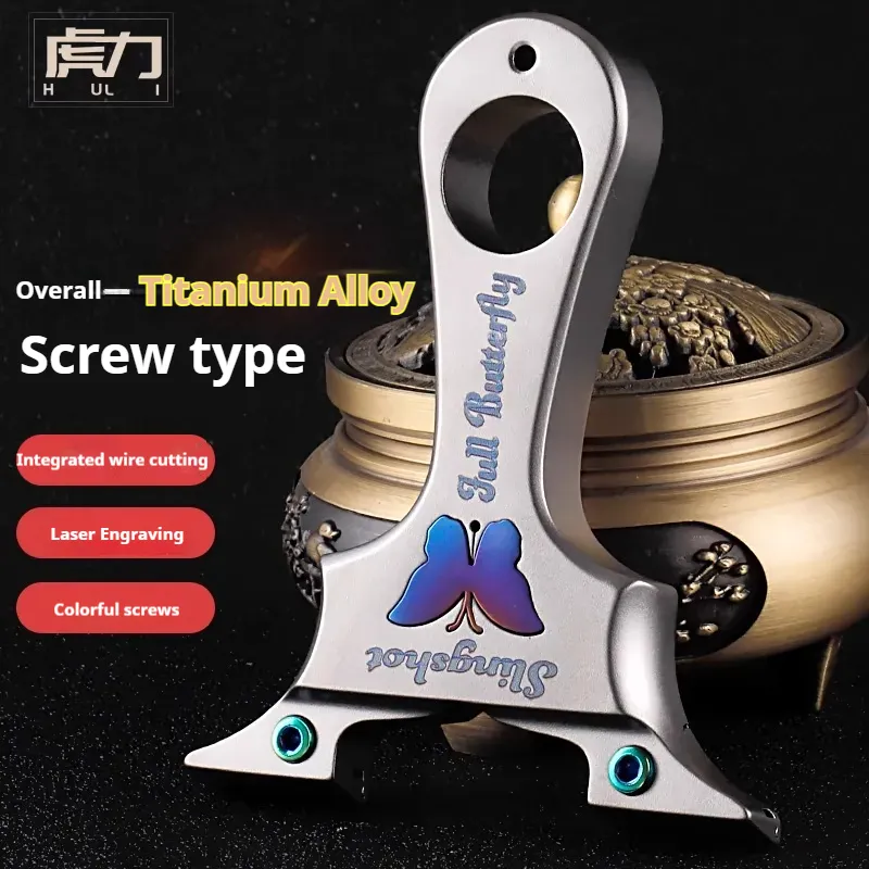 Home > Products > Huli slingshot > Genuine all-titanium alloy butterfly screw quick-press high-precision outdoor high-power flat rubber band slingshot holder