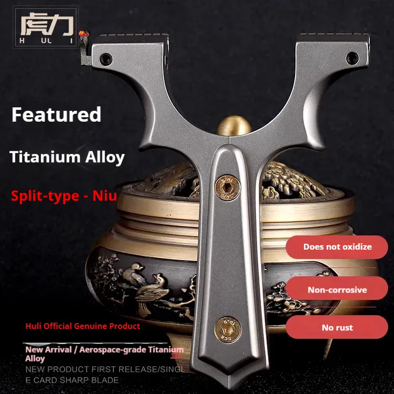 Home > Products > Huli slingshot > Genuine all-titanium alloy Little Bull Dragon Tooth fast-press high-precision competitive outdoor high-power flat rubber band slingshot frame