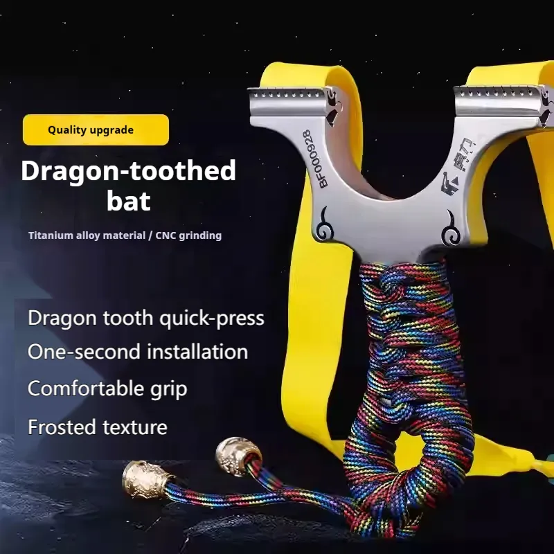 (Tiger Power All-Titanium Alloy) Dragon Tooth Fast-Pressure Outdoor High-Power High-Precision Flat Rubber Band Slingshot Frame